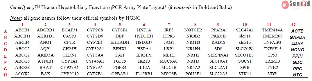 ScienCell 人肝胆功能 qPCR 芯片试剂盒 (GQH-HHB) 专为全面分析 88 个核心基因的表达而设计,这些基因与胆汁的合成、分泌、转运和调控密切相关。
