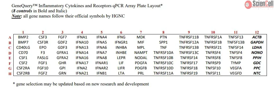 GeneQuery™ 人源炎症细胞因子及其受体相关基因 qPCR 阵列检测试剂盒
