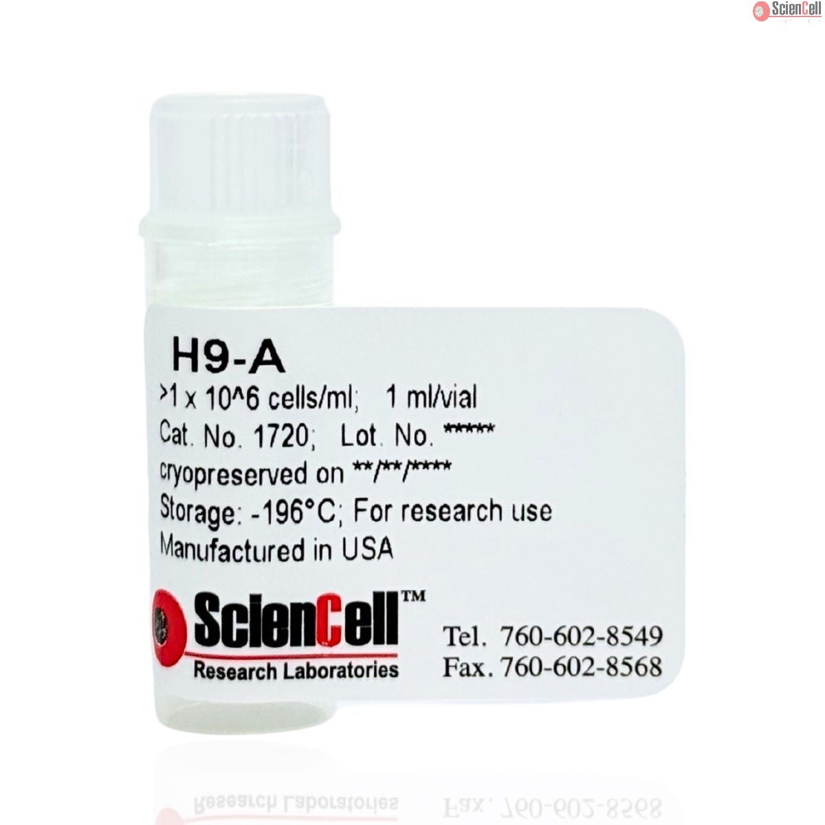 Human Pluripotent Stem Cell-derived Astrocytes (H9-A) are cryopreserved and delivered frozen. Each vial contains >1 x 10^6 cells in 1 ml volume. H9-A are characterized by immunofluorescence with antibody specific to GFAP, S100β and Vimentin.