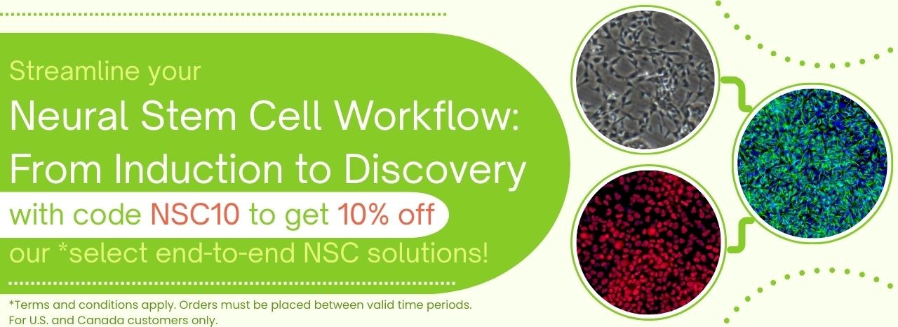 To streamline your Complete Neural Stem Cell Workflow: From Induction to Discovery, we’re offering 10% off our end-to-end neural stem cell research solutions.