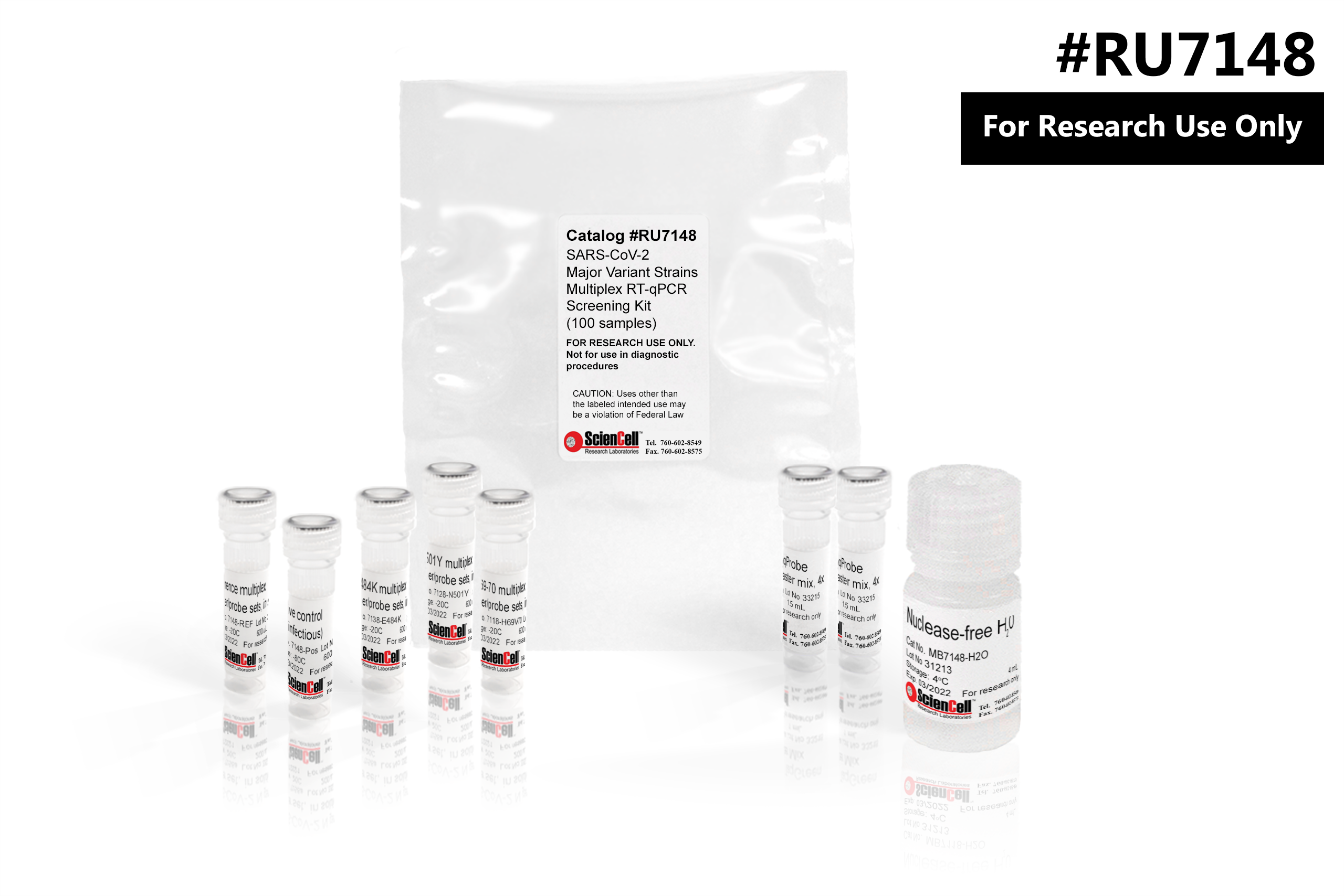 ScienCell's SARS-CoV-2 Variant B.1.1.7 Multiplex RT-qPCR Screening Kit (SCVUK) is designed to detect the presence of SARS-CoV-2 virus in samples and screen for the possible presence of the B.1.1.7 lineage by detecting the spike-HV 69-70 deletion.